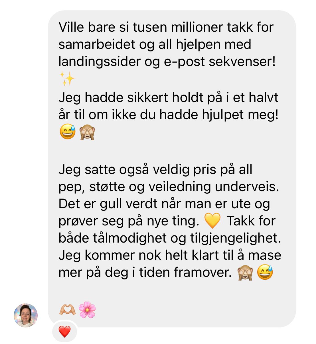Alt fra å sette opp nettside, lage funnel, sette opp kurs og gi teknisk støtte.